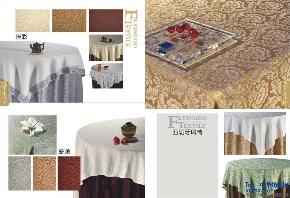 主要銷售客房;平紋 中,高檔【多種顏色40支-60支緞條】床單,被罩,枕套,枕芯,被子,墊被,床裙,床罩,床尾墊,浴簾以及毛巾系列。                                                    餐飲系列;多種顏色中高檔 【純棉  方格 化纖 花色圖案】臺(tái)布 口布 臺(tái)墊臺(tái)裙 臺(tái)呢 椅套 印花臺(tái)布具有不褪色、耐洗、耐磨、色澤艷麗、平整挺括且使用壽命長的特點(diǎn),印花臺(tái)布規(guī)格2.8m,表面繡有花朵圖案作裝飾,造型典雅、大氣,精美時(shí)尚,使整體更加美觀,深受廣大消費(fèi)者的喜愛。白色印花臺(tái)布采用優(yōu)質(zhì)化纖材料制作而成,款式新穎、物美價(jià)廉,是酒店、賓館、家庭等場所的必備用品之一。