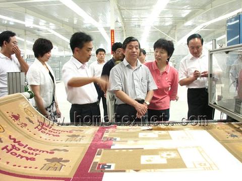 下午3點,楊會長在孫市長的陪同下先后參觀了公司的化纖車間、多功能展廳以及地毯車間,在化纖車間,公司董事長韓洪亮向楊會長詳細介紹了化纖車間的情況。韓總說,化纖車間是公司為延長產(chǎn)業(yè)鏈、保證原材料長絲而新上的車間,化纖車間無論是設(shè)備科技還是年產(chǎn)量在國內(nèi)都位居前列,目前已經(jīng)試車成功,即將投入量產(chǎn)。聽到這些,楊會長高興的說,機織地毯在我國方興未艾、正處于一個快速發(fā)展的黃金階段,誰抓住機遇、誰就能做大做強,東方地毯能夠依靠科技創(chuàng)新、走集團化的發(fā)展戰(zhàn)略,為中國地毯行業(yè)模式的發(fā)展創(chuàng)造了范例。